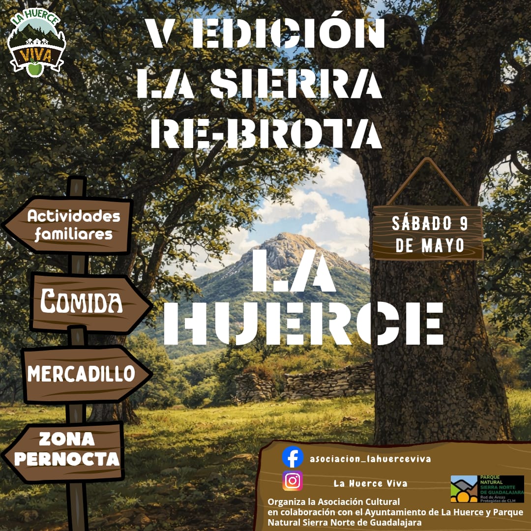 La quinta edición de Re-Brota 2026 llega con fuerza para consolidarse, el día Sábado 9 de Mayo, como uno de los eventos socioculturales más atractivos de la Sierra Norte de Guadalajara. Bajo el lema “La sierra re-brota”, este festival ludocultural organizado por la Asociación Cultural La Huerce Viva propone una jornada completa de actividades familiares, cultura, gastronomía y convivencia en plena naturaleza.